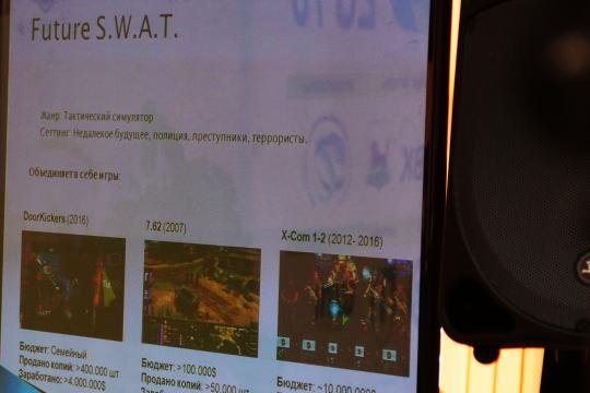 Future S.W.A.T. – видеоигра, тактический симулятор работы спецназа. Как рассказал автор проекта Денис Кузнецов, игра построена на принципах стратегии, предназначена для одного игрока, продаваться будет в агрегаторах типа Steam по цене от 484 рублей. Окупаемости достигнет при продаже 4138 копий.