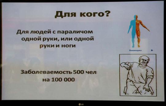 Neuro-Cybernetic Miracle Systems – разработанное практикующими нейрохирургами устройство предназначено для восстановления подвижности парализованной руки у людей, перенесших инсульт, рассказал представлявший проект врач-нейрохирург Баир Дамдинов.