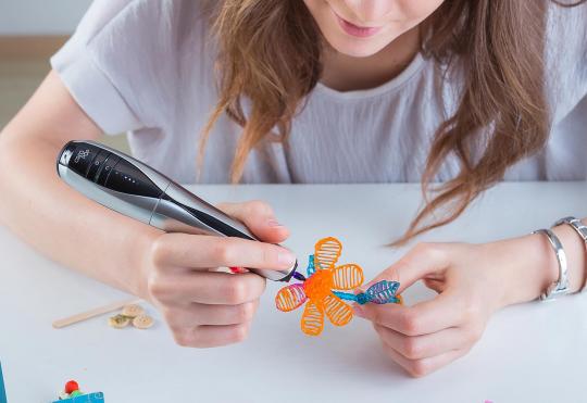В Томске разработали 3D-ручку CreoPop. Что в ней такого, спросите вы. Ручек такого формата – море, и что-то новенькое здесь придумать проблематично. Ан нет. В ручке CreoPop нет привычного пластика, который надо разогревать и потом им рисовать. В ней вроде бы обычные чернила, только очень густые. Это фотополимеры, которые застывают от ультрафиолета. Благодаря этому в ручке нет нагрева и она намного безопаснее для детей, нежели ее аналоги. Чернила CreoPop безопасны для человека и по своим свойствам напоминают воск наоборот. На кончике ручки установлены три мощных ультрафиолетовых светодиода. Когда направляешь их на чернила, они мгновенно затвердевают. Три секунды – и жидкая картинка стала твердой игрушкой. Ручка CreoPop сделана не столько для моделирования, сколько для рисования и последующего отделения двухмерных фигур от бумаги. Это и есть ее основной режим работы: светодиоды работают одновременно с подачей чернил, превращая рисунок в твердый предмет в реальном времени.