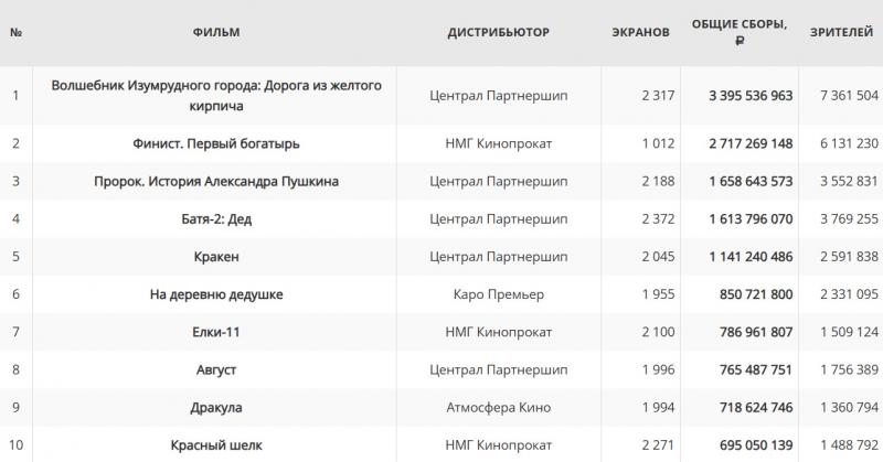 Топ-10 проката 2025 года по состоянию на 12 октября