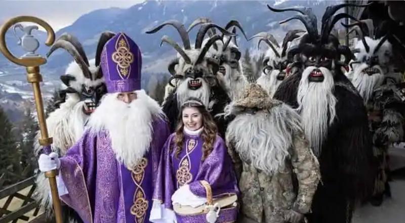 В альпийском регионе вечером 5 декабря (а кое-где — и всю первую неделю декабря) мужчины наряжаются Крампусами и бродят по улицам, бряцая цепями, звоня в колокольцы и пугая прохожих. Устраивают даже специальный «забег Крампусов» (Крампуслауф) и костюмированные представления, разыгрываемые инициативными группами местных жителей. Например, в австрийском Гальштате Крампус вечером выходит из пещеры Хирлатц и движется к городу в сопровождении свиты, направляясь к центральной площади. По дороге ряженые взаимодействуют со зрителями: задают вопросы детям, награждая подарками за правильные ответы, и подшучивают над взрослыми. Некоторые ребятишки тоже участвуют в шествии, наряжаясь «маленькими Крампусами». С годами этот фестиваль стал привлекать множество туристов, а его создатели каждый год добавляют новые детали: украшают и совершенствуют пещеру, устраивают пиротехнические шоу и т.д.