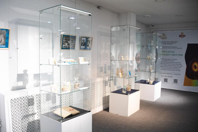 Музей впервые представит около 80 уникальных экспонатов, собранных и подготовленных студентами, проходивших обучение на ветеринарного врача – от микроскопических клещей до шкуры косули, пораженной подкожным оводом. В экспозиции органично переплелись история и наука. Линейка препаратов, над которыми на протяжении десятилетий трудились и продолжают трудиться студенты, дополнена фотографиями основателей кафедры.