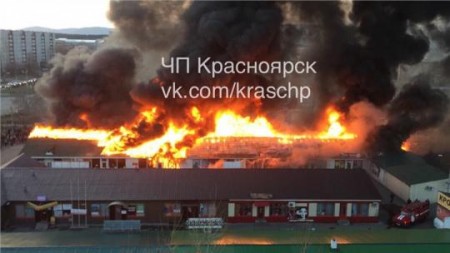 Крупный пожар вспыхнул вечером 25 апреля в городе Минусинске Красноярского края. На улице Абаканской вспыхнули павильоны, в которых торговали сотовыми телефонами, бытовой химией и одеждой. Возгорание было зафиксировано в 19:36 по местному времени.