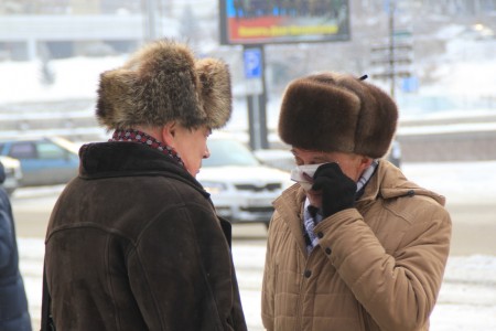 Красноярск. Студенты идут в гору три остановки, потому что Путин приехал в СФУ, и все автобусы и машины вообще никуда не пускают.