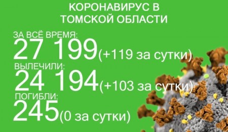 За последние сутки COVID-19 выявили ещё у 163 человек в Томской области, 187 – выздоровели. Об этом 2 января декабря сообщил федеральный оперштаб. С начала пандемии в регионе произошло 24 763 случая заражения коронавирусом, выздоровело уже 20 486 человек.