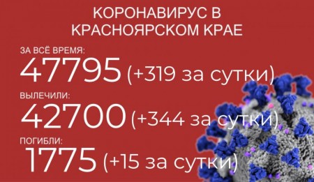 За последние сутки в Красноярском крае выявили ещё 323 человека с COVID-19, общее количество заражений достигло 47 156. Ещё 390 пациентов выписали из больниц, с начала пандемии выздоровело 41 890 человек. Количество погибших возросло до 1740, за последние сутки скончалось ещё 15 больных.