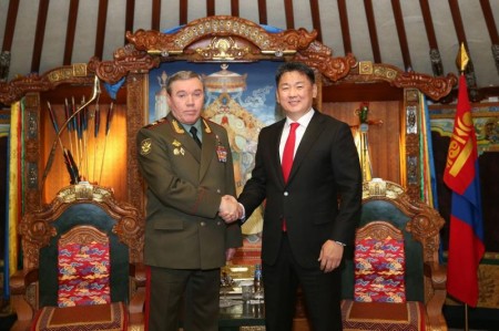 30 ноября президент Монголии Ухнаагийн Хурэлсух провел рабочую встречу с первым замминистра обороны РФ, генералом армии Валерием Герасимовым. Об этом сообщает портал zindaa.mn. Во время встречи обе стороны выразили удовлетворение отношениями и сотрудничеством двух государств.