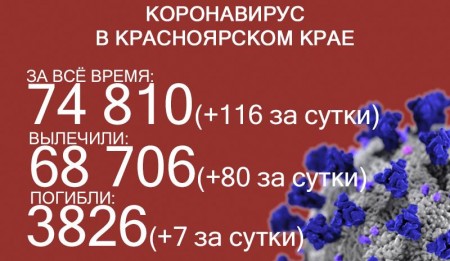 С 1 мая по 1 июня в Красноярском крае нашли 3148 больных коронавирусом. На 1 июня в регионе насчитывается 73 603 случая заражения коронавирусом. Суточный прирост – 99, темп прироста – 0,1%. За всё время выздоровело 67 749 человек, в том числе 80 за последние сутки.