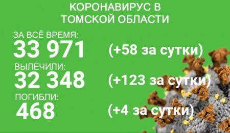 По состоянию на 30 июня в Томской области зарегистрировано 34 180 случаев новой коронавирусной инфекции. В минувшие сутки заболели 89 человек. За сутки с 29 по 30 июня выздоровели 160 пациентов. С начала эпидемии излечились 32 568 человек. От коронавируса в регионе скончались 468 человек.