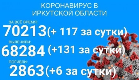 В Иркутской области, по данным на утро 1 июня, зарегистрировано 70096 официально подтверждённых случаев заболевания коронавирусом. Прирост за сутки составил 110 новых случаев, 11 из них - дети до 17 лет, сообщает региональный оперштаб.