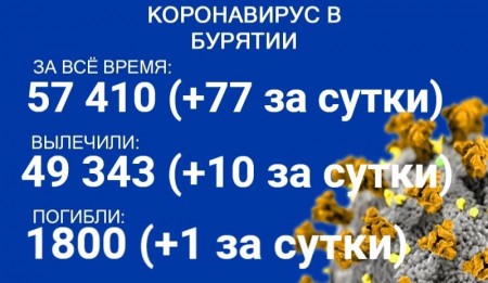 По данным на 1 сентября, еще 90 человек в Бурятии заболели COVID-19. Также за сутки 20 пациентов выздоровели. Летальных исходов зарегистрировано не было. Об этом сообщает пресс-служба регионального Роспотребнадзора.