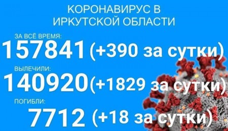 По данным оперштаба Иркутской области на 2 января, в регионе официально зарегистрирован 157841 подтверждённый тестами ПЦР случай заболевания коронавирусом. За сутки было выявлено 390 новых случаев. 2273 человека лечится в ковидных стационарах.