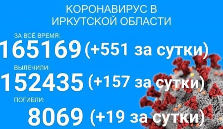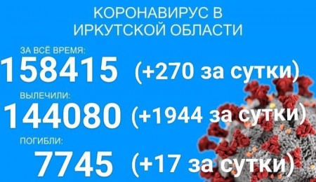 По данным оперштаба Иркутской области на 1 января 2022 года, в регионе зарегистрирован 157451 официально подтверждённый тестами ПЦР случай заражения коронавирусом. За сутки выявлено 440 новых случаев. 2266 человек лечится в ковидных стационарах.