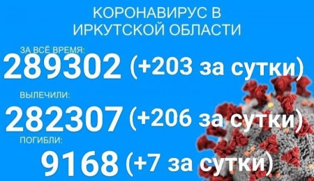 По данным оперштаба Иркутской области на 1 апреля, в регионе зарегистрировано 287385 официально подтверждённых случаев заболевания коронавирусом. За последние сутки выявлено 275 новых случаев, 73 из них — дети до 17 лет. Всего в Прибайкалье коронавирусом болеет 719 детей.