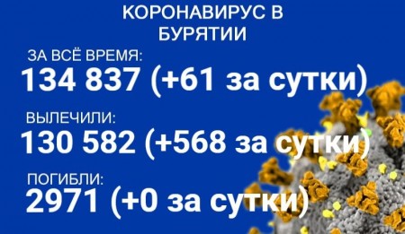 В Иркутской области, по данным на 30 апреля, зарегистрировано 291739 официально подтверждённых случаев заболевания коронавирусом. Прирост за сутки составил 120 новых случаев, сообщает региональный оперштаб. В больницах лечится 441 больной.