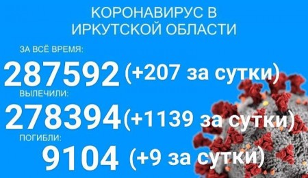 По данным оперштаба Иркутской области на 2 апреля, в регионе официально зарегистрировано 287592 подтверждённых тестами ПЦР случая заражения коронавирусом. За последние сутки выявлено 207 новых случаев. 715 человек находится на лечении в ковидных стационарах.