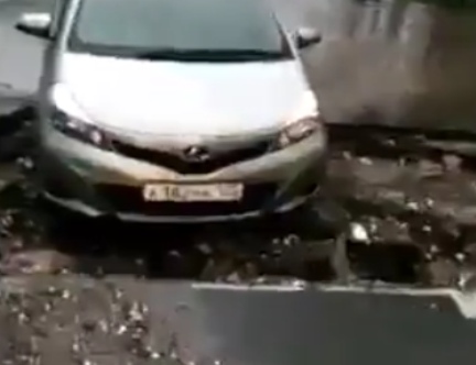 Видеозапись, на которой машина провалилась в дорожную яму, появилась в группе «ДТП38RUS» ВКонтакте. На кадрах видно, что вместо асфальта на магистрали образовалась яма с песком.