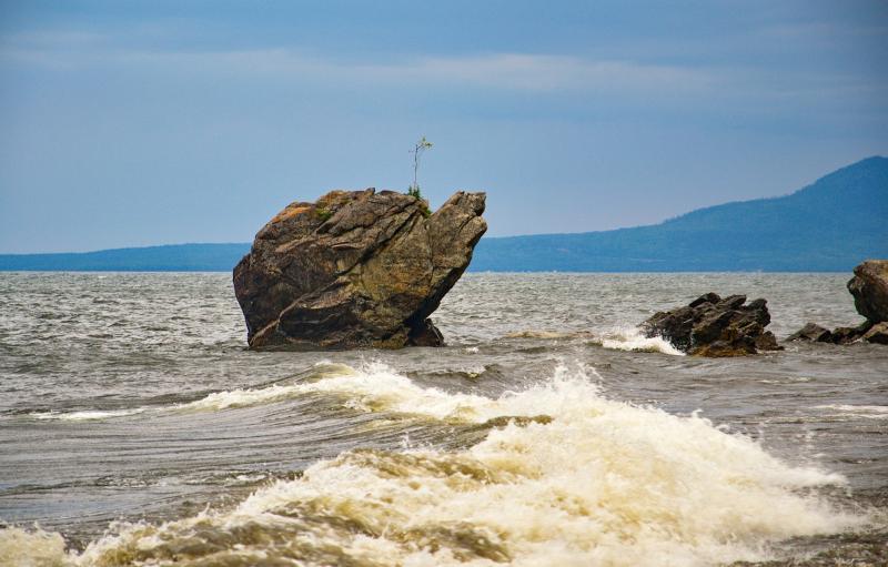 Валун Черепаха – один из самых узнаваемых природных памятников на восточном побережье Байкала. Площадь каменной «рептилии» составляет около ста квадратных метров. Его массивная «спина» возвышается прямо из воды, а очертания настолько напоминают черепаху, что официальное название «островок Чаячий» давно ушло в тень. Народное и простое имя оказалось куда живучее.