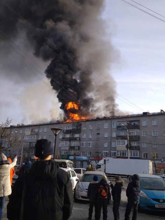 Сообщение о пожаре поступило в 14.54 28 января. Загорелась квартира на пятом этаже. Огонь быстро перебрался на крышу здания. На борьбу с огнем направили 10 единиц техники и 25 пожарных.