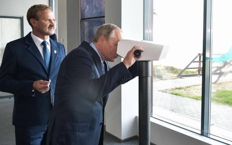 Василий Сутула с президентом Владимиром Путиным во время его визита в Танхой, август 2017 года.