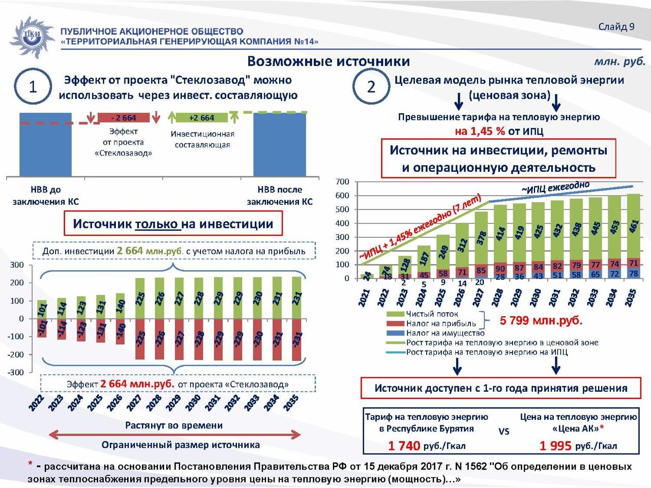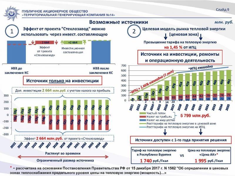 • Средства, сэкономленные на закрытии четырех убыточных котельных Стеклозавода, компания предлагает потратить на инвестпроекты, направленные на развитие сетей города. И при этом не понижать тариф для населения, как изначально планировалось, а сохранить его на том же уровне на семь лет, ежегодно при этом индексируя. Напомним, котельные Стеклозавода работают на мазуте и дороги в обслуживании, и затраты распределяются на всех потребителей города. Летом 2020 года стало известно, что федеральный центр выделит Улан-Удэ 300 миллионов рублей на подключение микрорайона к централизованному теплоснабжению.
