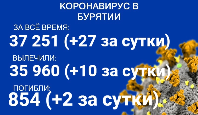 По данным на 3 мая, еще 27 человек в Бурятии заболели COVID-19. Также за сутки 10 пациентов выздоровели, двое скончались. Об этом сообщает пресс-служба регионального Роспотребнадзора.