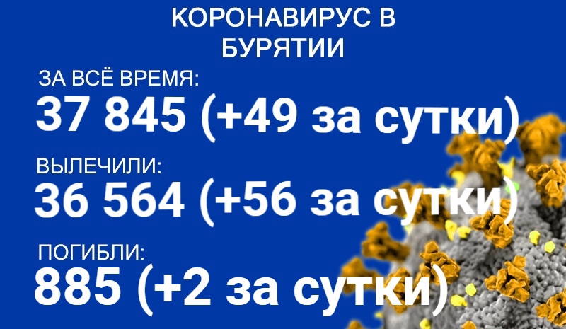 По данным на 21 мая, еще 49 человек в Бурятии заболели COVID-19. Также за сутки 56 пациентов выздоровели, двое скончались. Об этом сообщает пресс-служба регионального Роспотребнадзора.