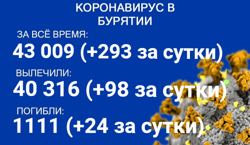 По данным на 25 июня, еще 293 человека в Бурятии заболели COVID-19. Также за сутки 98 пациентов выздоровели, 24 скончались. Об этом сообщает пресс-служба регионального Роспотребнадзора.
