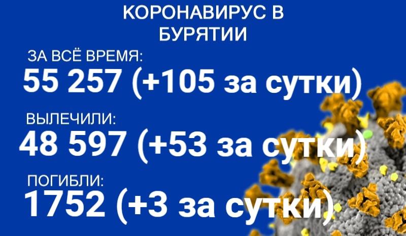 По данным на 19 августа, еще 105 человек в Бурятии заболели COVID-19. Также за сутки 53 пациента выздоровели, трое скончались. Об этом сообщает пресс-служба регионального Роспотребнадзора.