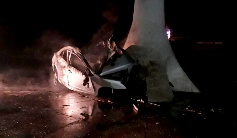 В Улан-Удэ иномарка протаранила стелу и вспыхнула: два человека погибли