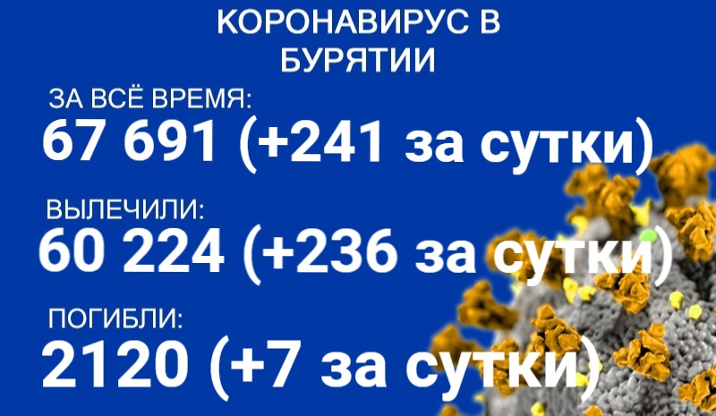 По данным на 21 ноября, еще 241 человек в Бурятии заболел COVID-19. Также за сутки 236 пациентов выздоровели, семеро скончались. Об этом сообщает пресс-служба регионального Роспотребнадзора.