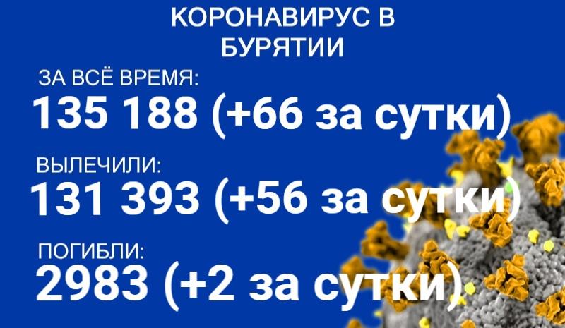 66 случаев COVID-19 выявили в Бурятии за минувшие сутки