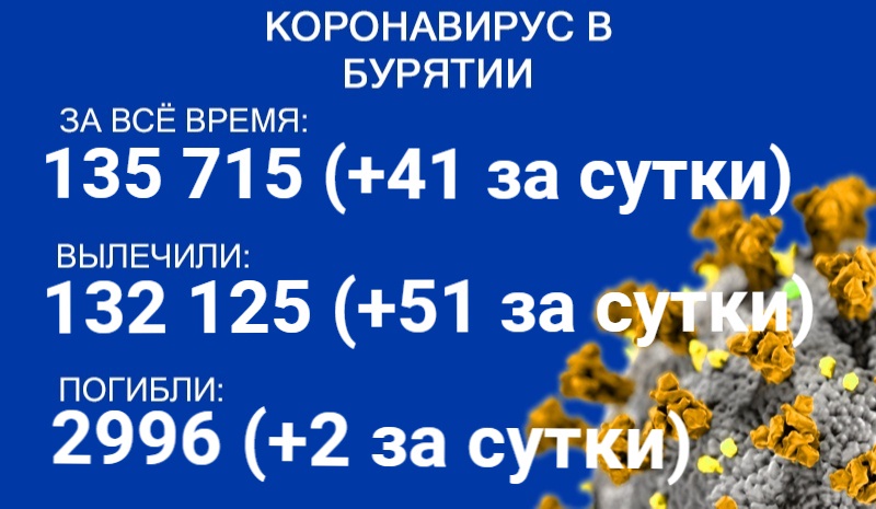По данным на 22 апреля, еще 41 человек в Бурятии заболел COVID-19. Также за сутки 51 пациент выздоровел, двое скончались. Об этом сообщает пресс-служба регионального Роспотребнадзора.