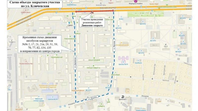 В Улан-Удэ с 5 апреля по 8 мая будет закрыт участок дороги по Ключевской