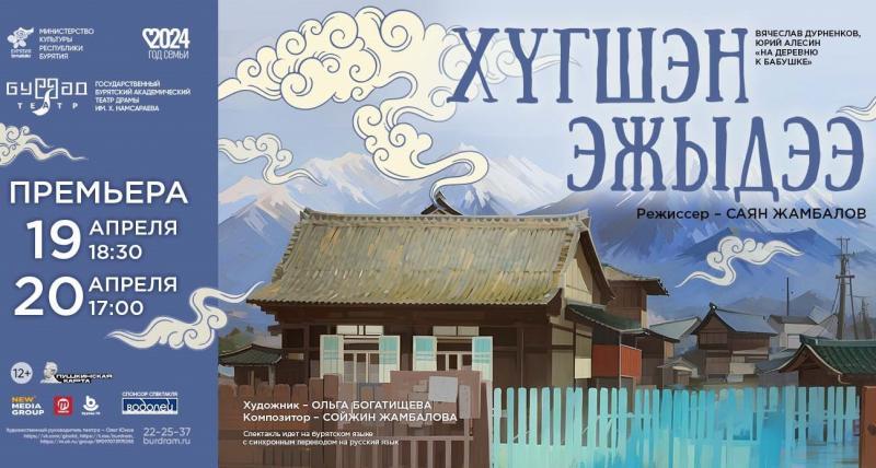 24 мая в Государственном Бурятском академическом театре драмы имени Хоца Намсараева состоится спектакль «Хугшэн Эжыдээ», по мотивам одноимённой пьесы Вячеслава Дурненкова и Юрия Алесина «На деревню к бабушке».