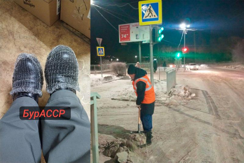 В Улан-Удэ предлагают надевать металлические сетки для посуды на обувь в целях безопасности. Будьте осторожны. На улице гололёд. Господин Шутенков и Гашев тоже надевайте сеточки на обувь!