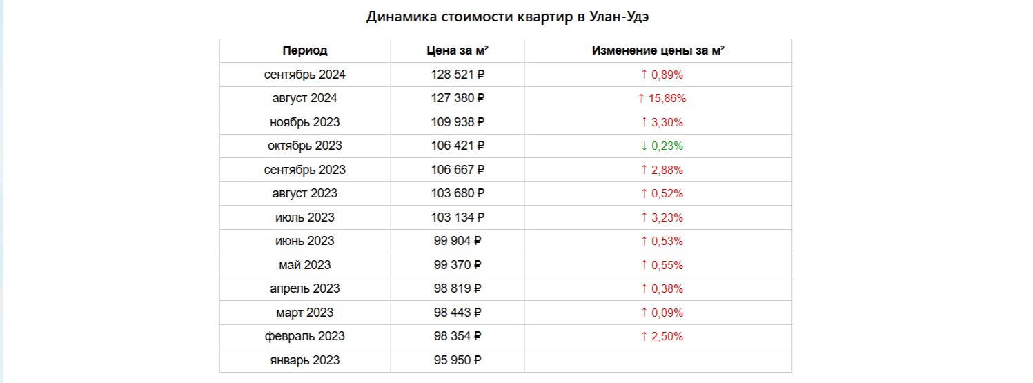 Массовый и платежёспособный спрос, искусственно созданный государством, столкнулся с ограниченным количеством новостроек в Улан-Удэ. Программа не распространялась на вторичку. Застройщики — не дураки, они начали поднимать цены. За ними естественно потянулся и вторичный рынок. Если в конце 2022 года «квадрат» на вторичном рынке стоил около 96 тысяч рублей, то к осени 2024-го — уже более 128 тысяч. Рост почти на треть за полтора года.