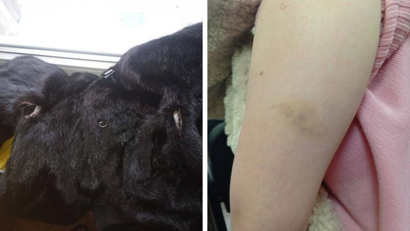 Разорванная шуба и синяк