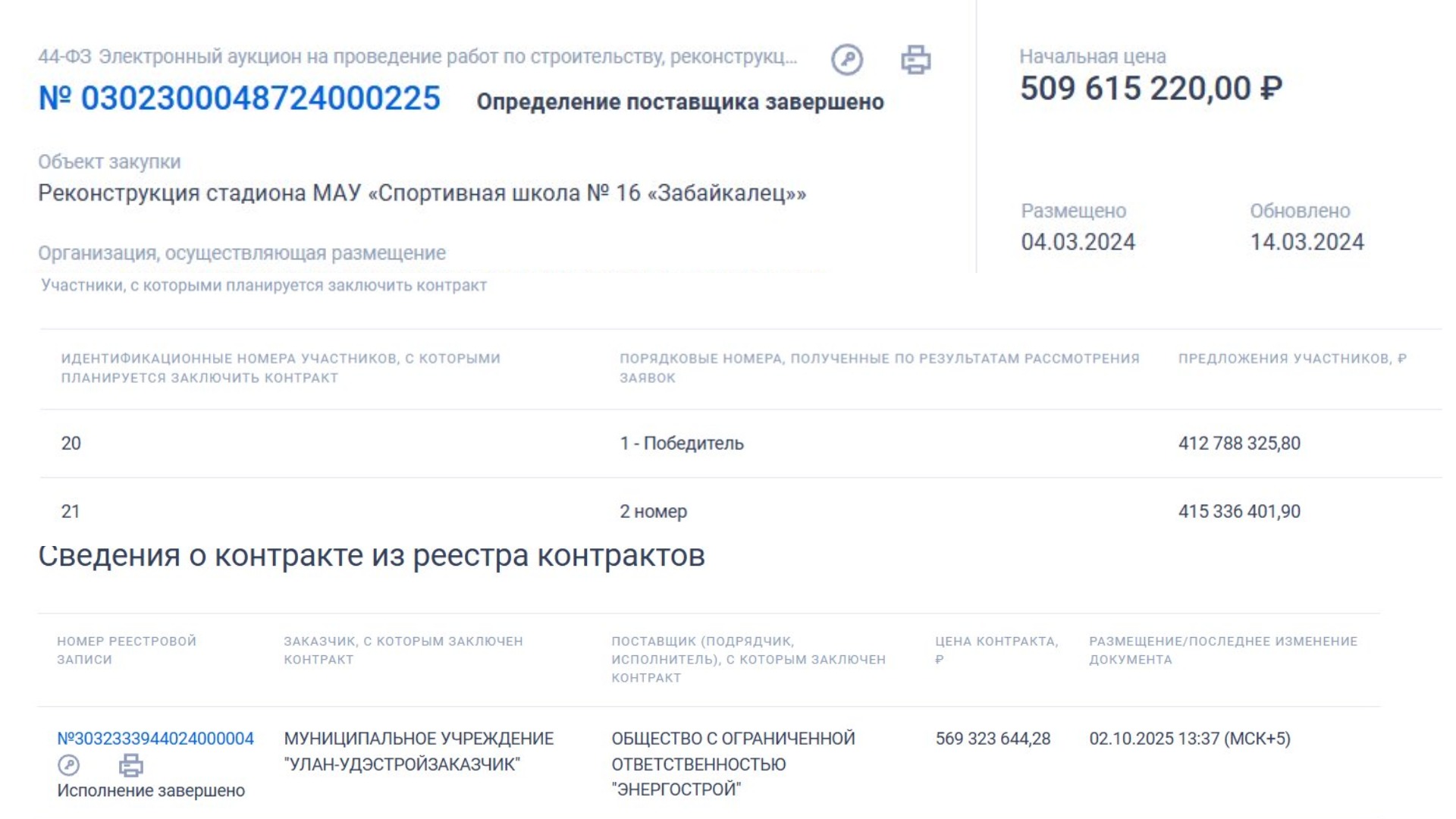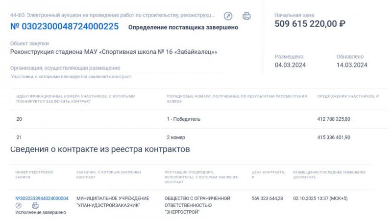 По данным источников, знакомых с ходом проверки, внимание силовиков привлекли обстоятельства самих торгов. Компания «Энергострой» (ОГРН 1190327008960) выиграла тендер, предложив цену почти на 90 миллионов рублей ниже конкурентов. Подрядчик выиграл торги и отправил бумаги в государственную экспертизу. После согласований чиновники увеличили сумму контракта на 412 миллионов рублей. Итоговая цена с учётом тендерного коэффициента перевалила за 569 миллионов. При этом объём работ в первоначальном техническом задании не изменился.