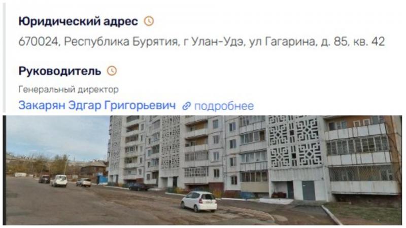 Налоговая инспекция зарегистрировала ООО «Доринвест» в обычной жилой квартире дома № 85 на улице Гагарина в Улан-Удэ. По официальным данным налоговой службы, в штате компании числятся всего 17 человек. Эдгар Закарян руководит фирмой с 2017 года и владеет ей единолично. Уставный капитал составляет 16 тысяч рублей. Фирма носит статус малого предприятия.