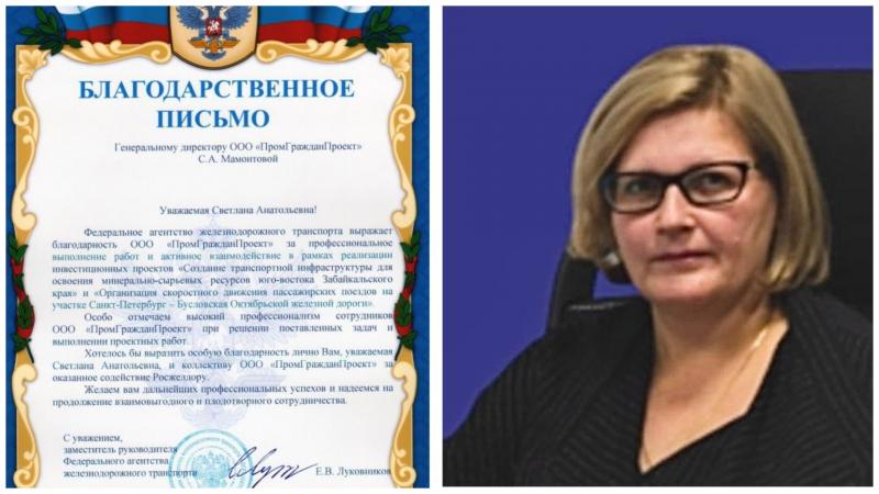 Перейдём к делу Луковникова о мошенничестве. Главным сообщником экс-зампреда следствие считает Светлану Михайлову, которая занимает пост генерального директора компании «ПромГражданПроект». Они познакомились задолго до работы в Бурятии. В 2016 году Луковников занимал должность заместителя руководителя Федерального агентства железнодорожного транспорта (Росжелдор). Тогда он лично подписал благодарственное письмо на имя Михайловой (тогда ещё Мамонтовой) за «высокий профессионализм».