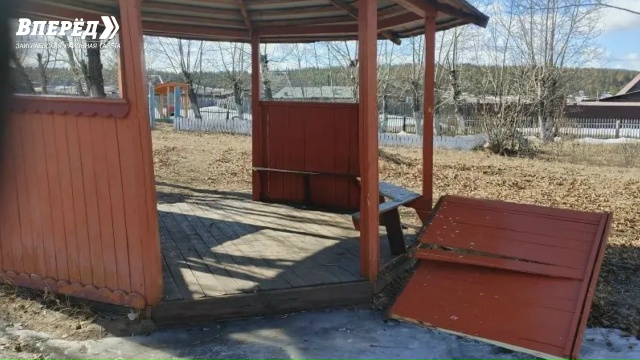 Вандалы повредили беседку и скамейку. От постамента памятника воинам ВОВ они откололи плитку.