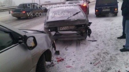 Массовая авария произошла на Октябрьском мосту в Красноярске около четырех часов дня 8 января. Фото с места происшествия очевидцы выложили в интернет. На снимках видно, что в результате массового ДТП столкнулись пять автомобилей - два отечественных и три иномарки.
