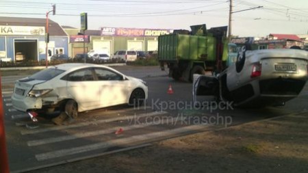 Авария произошла на проспекте Металлургов в Красноярске 24 сентября. Виновником ДТП стал пьяный водитель "Тойоты". По словам очевидцев, автомобиль Hyundai остановился перед "зеброй", чтобы пропустить пешехода. Водитель автомобиля Toyota, ехавший следом, не успел затормозить.