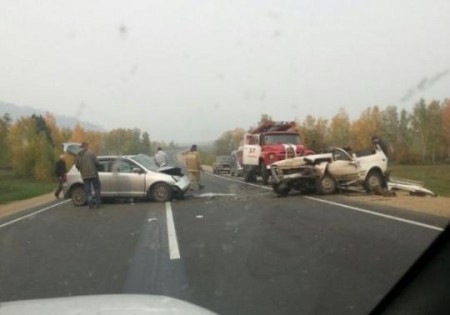 Авария произошла утром 25 сентября на федеральной трассе Р-258 «Байкал». Лоб в лоб столкнулись два автомобиля: ВАЗ 2121 и Honda Civic. Что стало причиной ДТП, пока не установлено. По-видимому, один из водителей допустил выезд на встречную полосу.