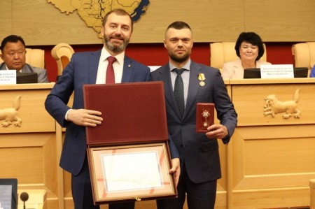 Спикер Законодательного Собрания Иркутской области Александр Ведерников вручил памятную медаль за участие в специальной военной операции предпринимателю «РТ-НЭО Иркутск» Вадиму Логунову. Награждение состоялось сегодня в рамках 70-ой сессии областного парламента.