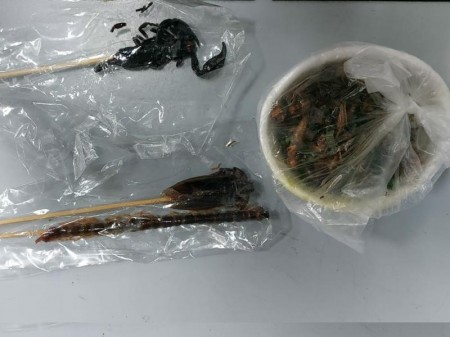 Шашлычки из скорпионов и жареные личинки насекомых обнаружили иркутские таможенники в аэропорту у пассажира рейса «Бангкок — Иркутск». Об этом сообщила пресс-служба Иркутской таможни. Товар не был произведён промышленным способом, маркировки и документов у владельца жареных скорпионов не было.