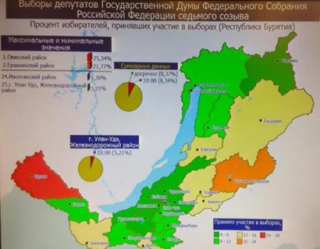 По данным избирательной комиссии Бурятии на 12 часов дня явка на выборы составила 20,07%, то есть за первые 4 часа голосования на выборы уже пришёл каждый пятый житель республики. Это выше явки на выборы в Госдуму 2011 года почти на 6%, тогда явка на 12 часов составила 14,4%.