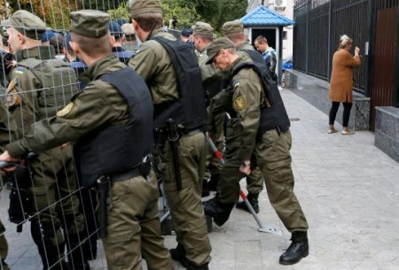 У посольства России в Киеве в единый день голосования произошли столкновения и потасовки. Толпы протестующих украинцев пришли к российскому посольству, где открыт участок для голосования на выборах в Госдуму. Собравшиеся попытались заблокировать вход и снести ограждение.