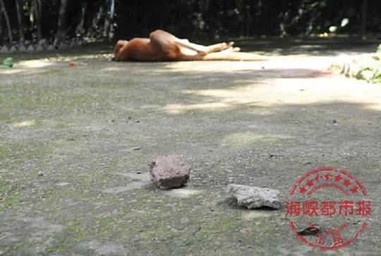 Посмотрев записи с камер видеонаблюдения, сотрудники увидели, что туристы швыряли в животных не только камни, но и булыжники.
